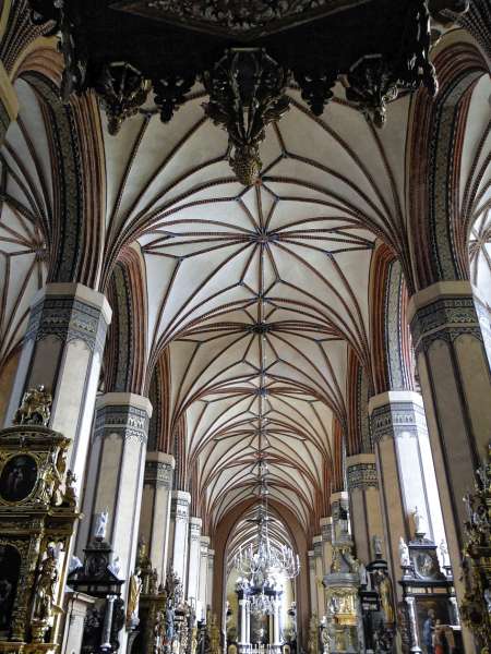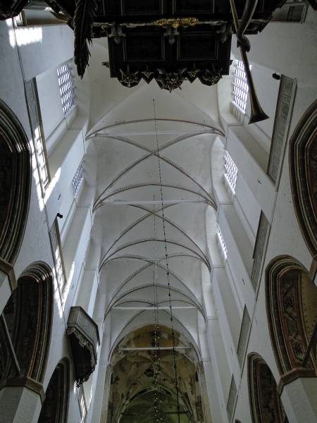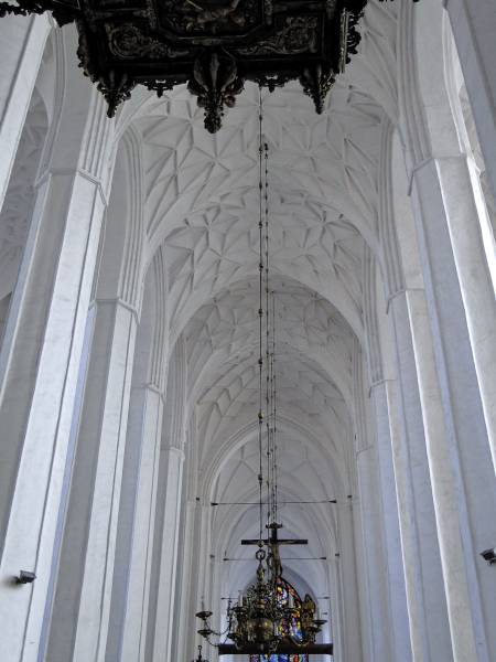Das beginnt eben schon bei den Größenverhältnissen. Vielleicht erweist sich uns da der stolze überkommene Name der Danziger St. Marienkirche als hilfreich: die »Krone Danzigs«. Vielleicht hilft es, diese Kirche zuerst aus der Ferne zu erblicken: Da krönt sie die Stadt in der Tat noch immer, da wird ihre überragende (wir nehmen das Wort wieder wörtlich) Bedeutung deutlich. Oder wir scheuen nicht die mehr als 400 Stufen und besteigen den Turm der St. Marienkirche und werden in rund 80 Metern Höhe von einem wahrhaft krönenden Blick über die Stadt belohnt.