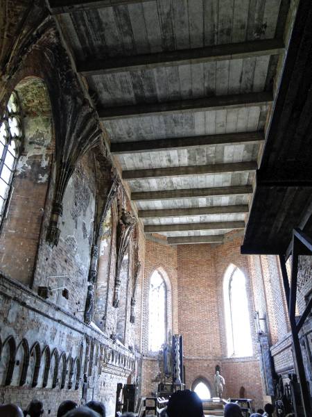 Die Marienkirche der Ordensburg Marienburg wurde im Zweiten Weltkrieg stark beschädigt und wurde etappenweise restauriert.