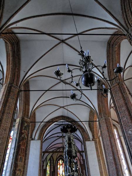 Die Reise hat in Lübeck begonnen. Auf dem Boden des Südturms liegen noch heute die geborstenen Reste zweier Glocken des ursprünglichen Geläuts. Sie hingen mehrere Jahrhunderte dort in 60 Meter Höhe und riefen zum Gottesdienst. Im März 1942 fielen Bomben auf die Kirche – ausgerechnet von oben herab kam die Zerstörung, von oben, wohin die ganze Kirche gerichtet war und Segen erflehte seit so langer Zeit. Die mächtigen Eichenbalken, welche die Last der Glocken seit der Errichtung der Kirche sicher gehalten hatten, vergingen rasch im Feuer. Mit einem letzten dröhnenden Klang stürzten die Glocken, umloht vom Funkenregen des brechenden Gebälks, herab. Dort liegen sie, zerschmettert und stumm geworden, unverändert als Mahnung zum Frieden. Und eine solche Mahnung stellt auch die letzte Backstein-Kirche dar, die wir auf dieser Reise besuchen: St. Marien in der Marienburg. Anstelle der prächtigen, hoch aufragenden und Ehrfurcht einflößenden Gewölbe bietet sich dem in die Höhe gerichteten Blick hier nur eine glatte Betondecke dar. Die ist notwendig, sie schützt den Rest der Kirche, deren Innenraum erhalten, aber von schwerer Verwüstung geprägt ist. Die Gewölbedecke, einst – wie alte Abbildungen zeigen – auch aufwendig bemalt, ist verschwunden. Auch hier kam die Zerstörung von oben, während des Kampfes um Stadt und Burg zwischen Wehrmacht und Roter Armee seit Ende Januar 1945, durch Bomben und Granaten, gleichviel.