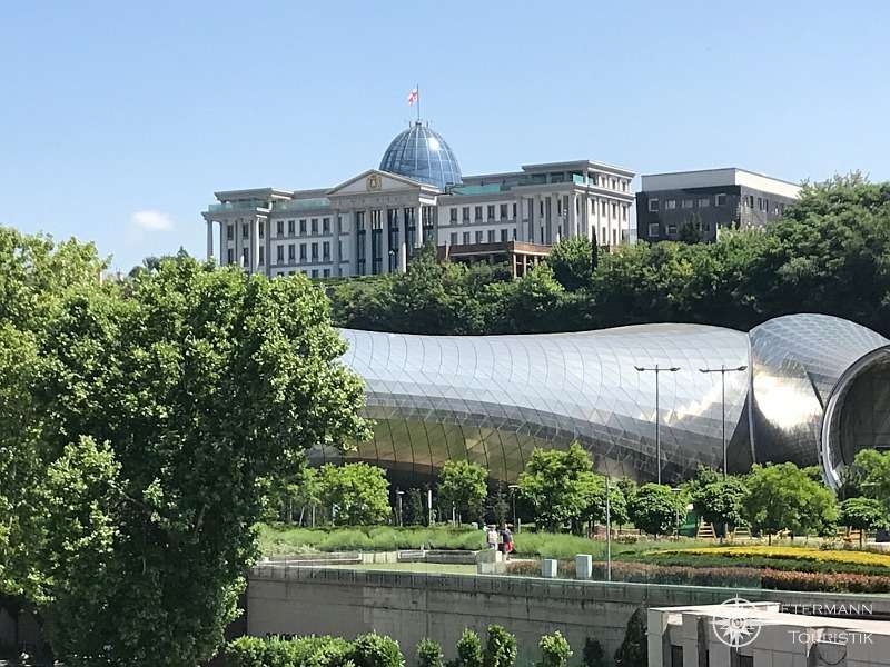 Blick auf den Präsidentenpalast in Tiflis mit dem Rike-Park im Vordergrund (Foto: Dr. Ute Olliges-Wieczorek)