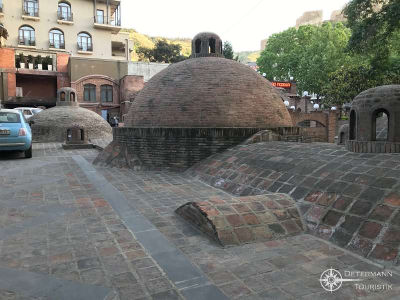 Am nächsten Morgen brechen wir zu einer Stadtführung auf. Tbilisi ist eine boomende Metropole mit vielen historischen und kulturellen Denkmälern. Die Altstadt lädt zum Bummeln ein. Der Großteil der Häuser in der Altstadt stammt aus dem 19. Jahrhundert. Erhalten und auch heute noch im Betrieb sind die Schwefelbäder, deren heiße Quellen Tbilisi seinen Namen gab. Sie liegen zumeist unterhalb des Erdbodens, so dass nur die runden Dachkuppeln zu sehen sind. Sehenswert ist vor allem das im persischen Stil erbaute, mit reichlich Mosaiken verzierte Irakli-Bad.