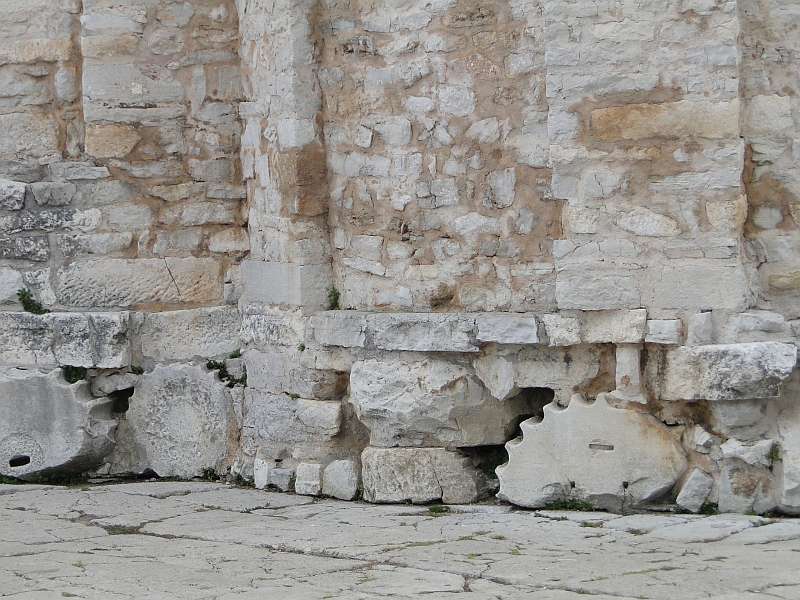 Das zertrümmerte Zadar wurde also unter den Vorzeichen des „blockfreien“ jugoslawischen Sozialismus besonderer Art wieder aufgebaut. Wer heute die Stadt durchstreift, wird der Rettung bzw. Rekonstruktion zahlreicher Baudenkmäler nicht den Respekt versagen können. Da ist etwa die schwerlich ohne Ehrfurcht zu betrachtende Donatus-Kirche, einer der ältesten erhaltenen christlichen Sakralbauten in Europa. Sie wurde in der ersten Hälfte des 9. Jahrhunderts auf dem ehemals römischen Forum der Stadt errichtet. Dabei fanden auch dort vorgefundene Teile noch weit älterer Bauten Verwendung, Spolien, wie die Architekturgeschichte sie nennt. Im Fundament der Donatus-Kirche sind die römischen Säulenfragmente unschwer erkennbar.